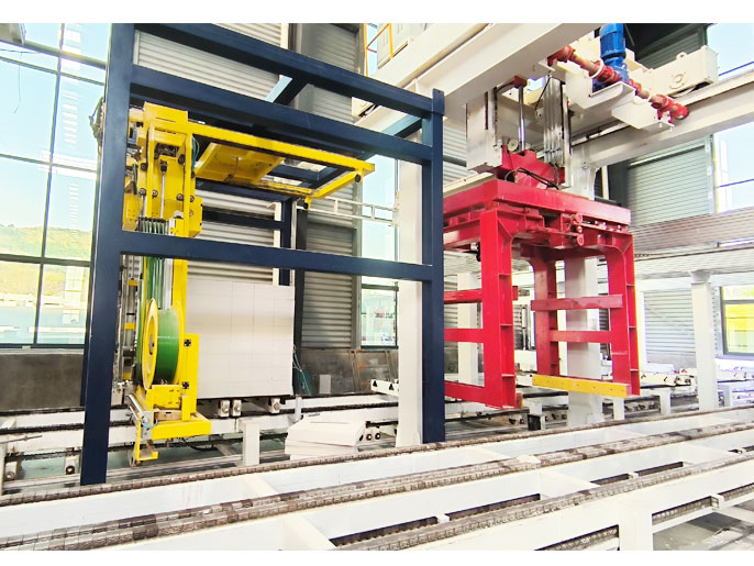 產(chǎn)品分揀和包裝工段:掰扳機(jī)、成品夾具、砌塊/板材輸送線等。完成蒸養(yǎng)出釜的坯體經(jīng)掰分后由包裝輸送設(shè)備進(jìn)行分揀、碼垛、打包并運(yùn)送至堆場。